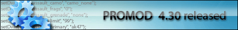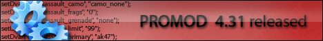 Ровно через 24 часа Создатели ProMod 4.30 решили изменить некоторые "баги" мода. И вот перед нами ProMod4.31 с некоторыми изменениями. -теперь в начале раунда спринт будет чуть дольше ,чем был ранее. -наконец то нас перестанет кикать за Iwd файлы (сделано так что при одинаковом название мода, но при разных настройках его , ваш компьютер сам будет решать эту проблему, не утруждая вас писать reconnect ) -убраны некоторые "баги" карты backlot (плошадка) -так же на паблик SD можно ставить mr12 и mr8 -и опять же некоторые корректировки насчет машин: теперь при взрыве машины от нее не будут отлетать покрышки (а возможно и капот).
